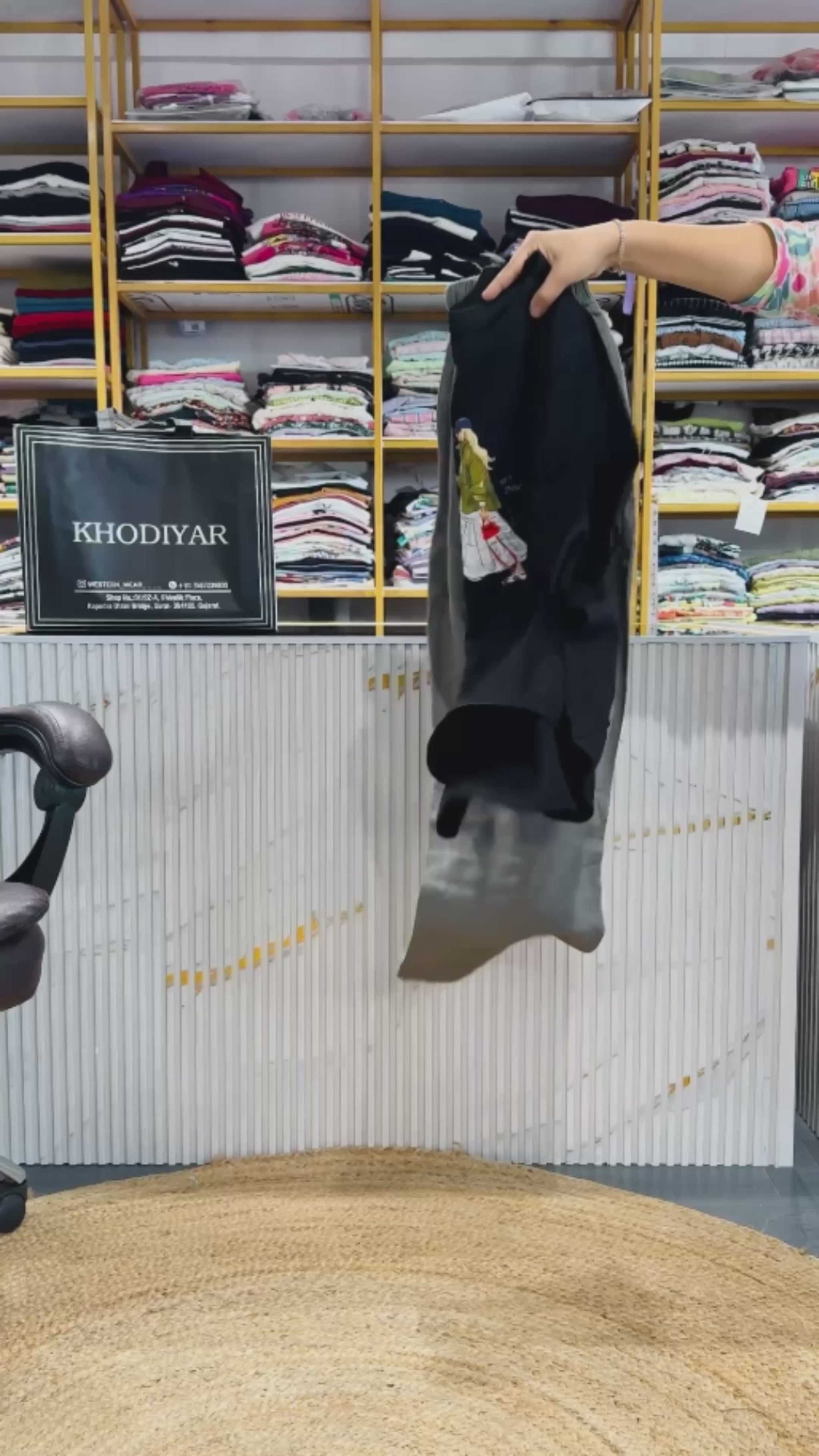 BLACK DOLL PATCH TSHIRT CUM TOP WITH LINEN PANT SET