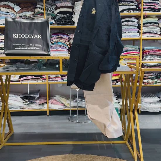 BLACK EMBROIDERY LINEN TOP WITH LINEN PANT SET