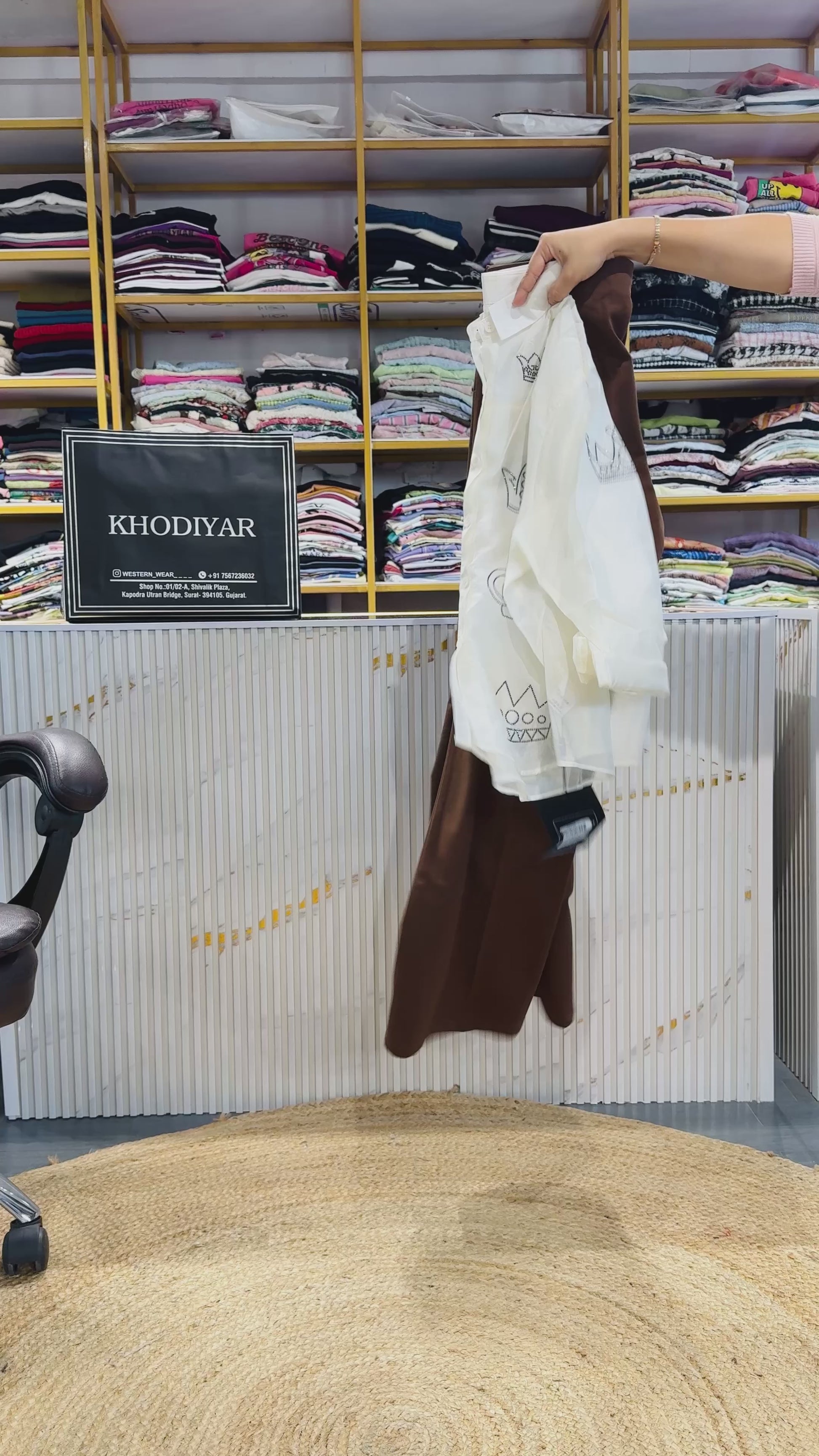 CROWN DIAMOND SHIRT WITH BROWN BELL BOTTOM PANT SET