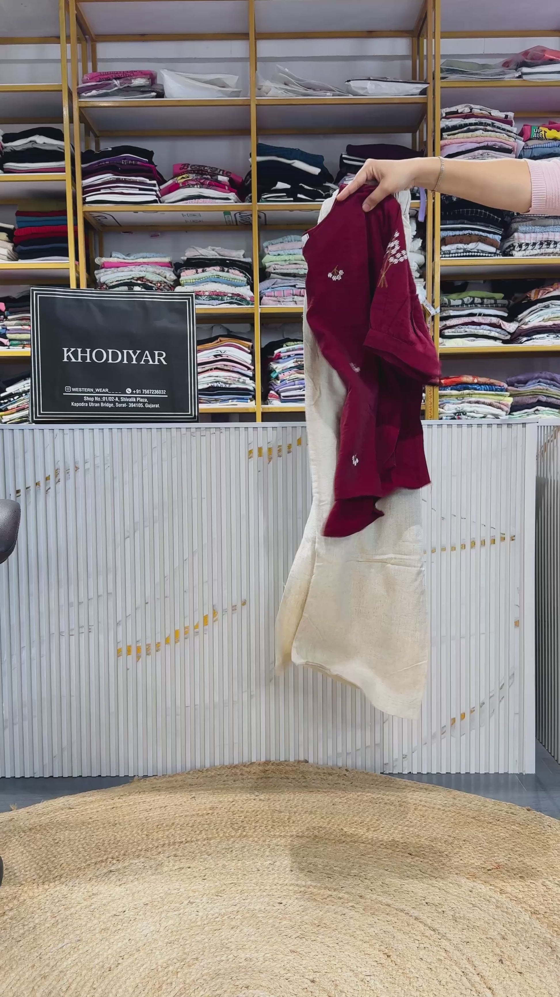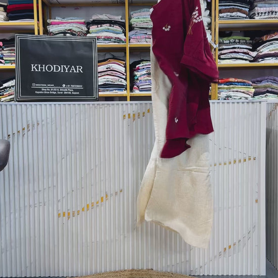 MAROON REDISH EMBROIDERY TOP WITH LINEN PANT SET