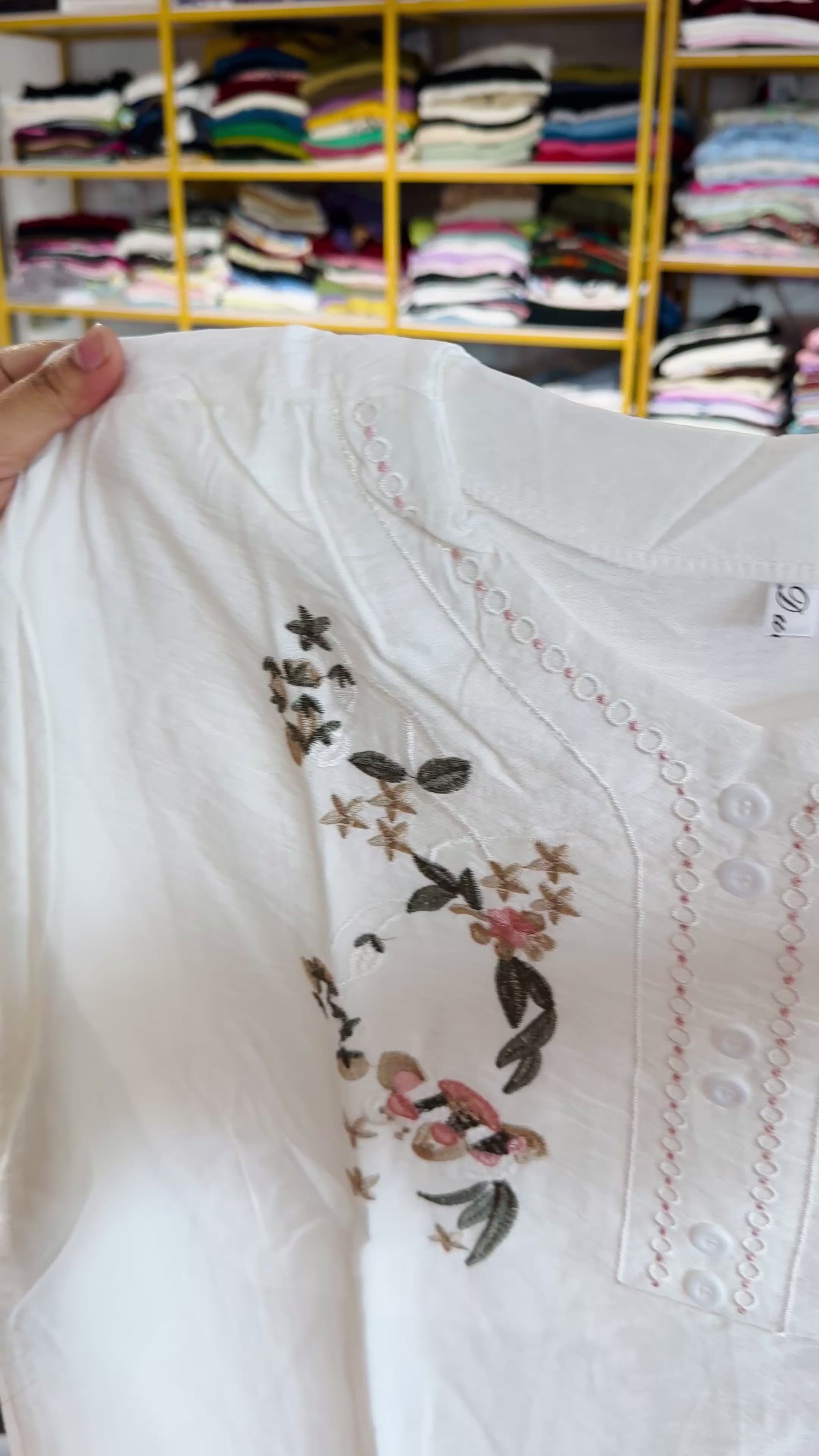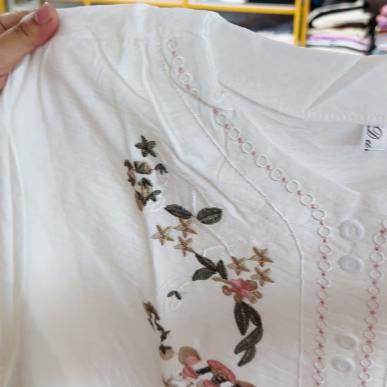 FLOWER EMBROIDERY COTTON VISCOUS BLACK TOP