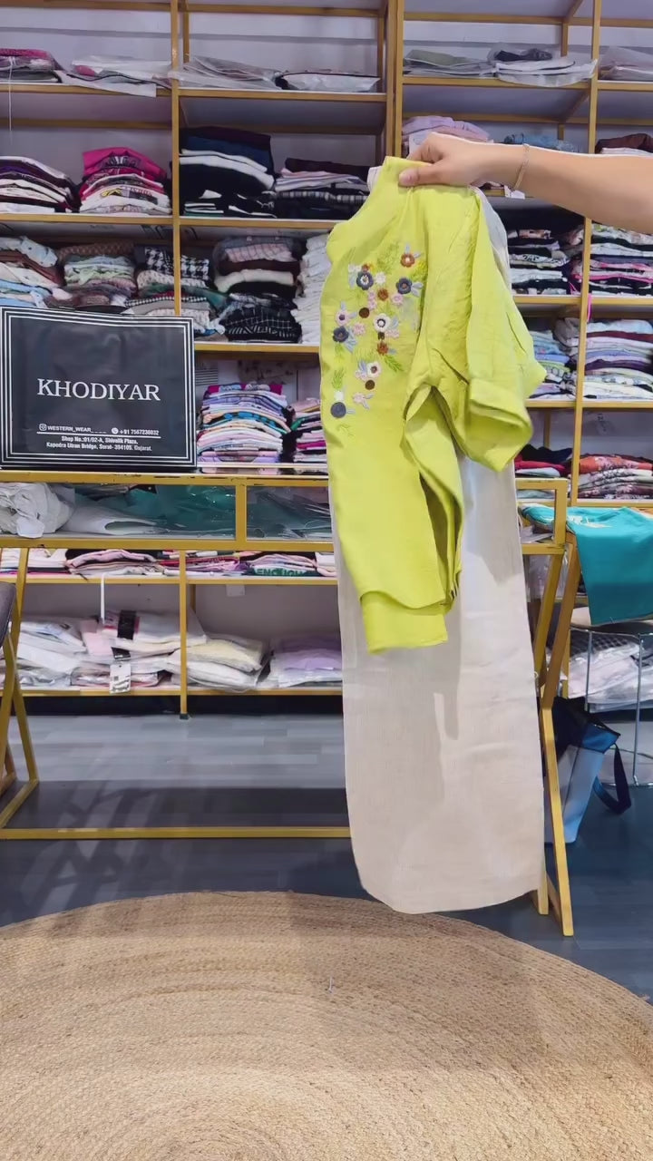 PARROT GREEN EMBROIDERY TOP WITH LINEN PANT SETTOP DETAIL:-