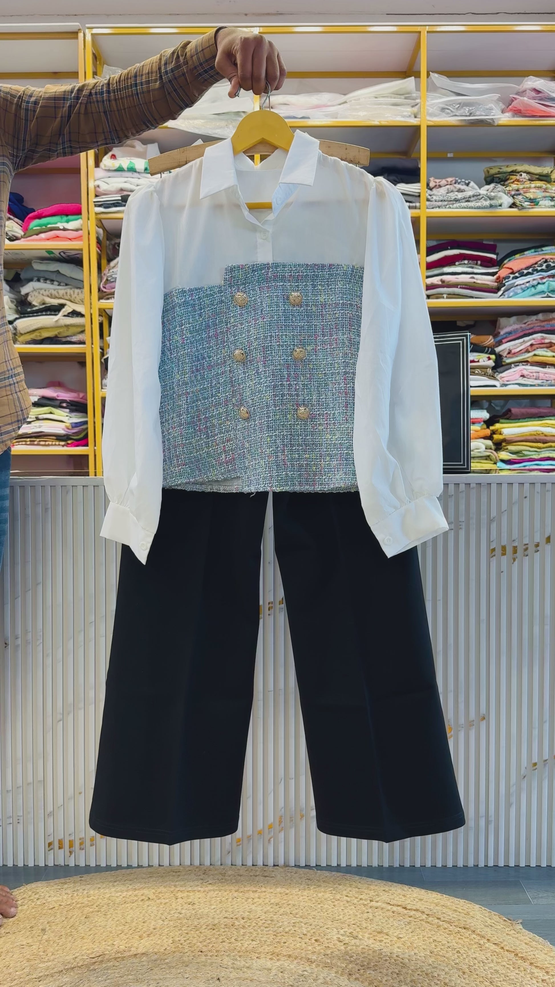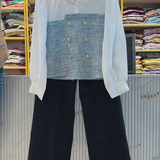 PARTYWEAR FANCY TOP WITH BELL BOTTOM STRETCHABLE TROUSER PANT SET