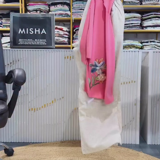 PEACH 3D FLOWER PATCH TOP WITH LINEN PANT SET
