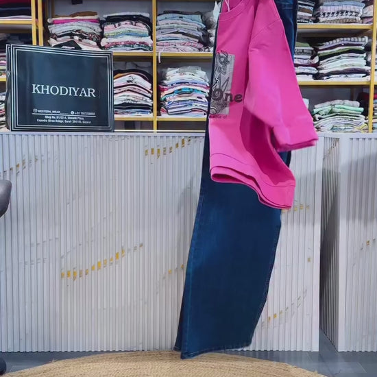 PINK CARTOON PRINT TSHIRT WITH DBLUES STRAIGHT DENIM PANT SET