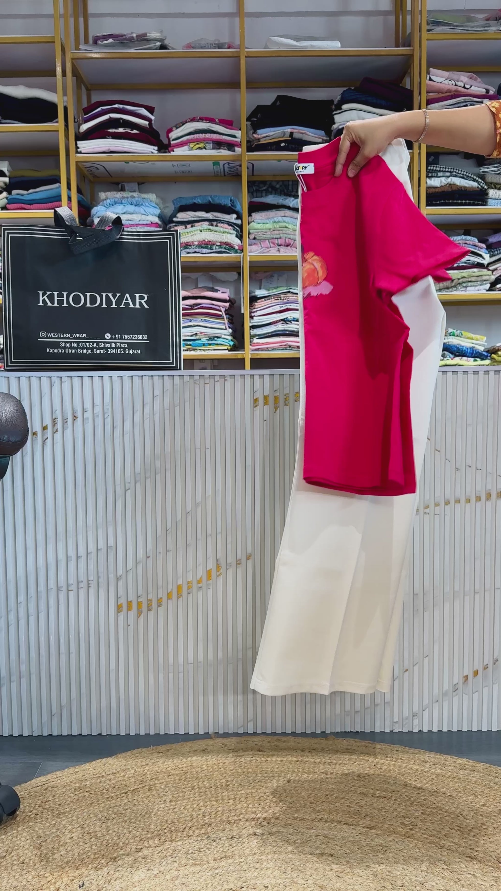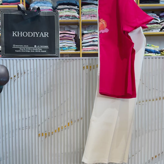 PINK EMBROIDERY COTTON TSHIRT WITH BELL BOTTOM TROUSER PANT SET
