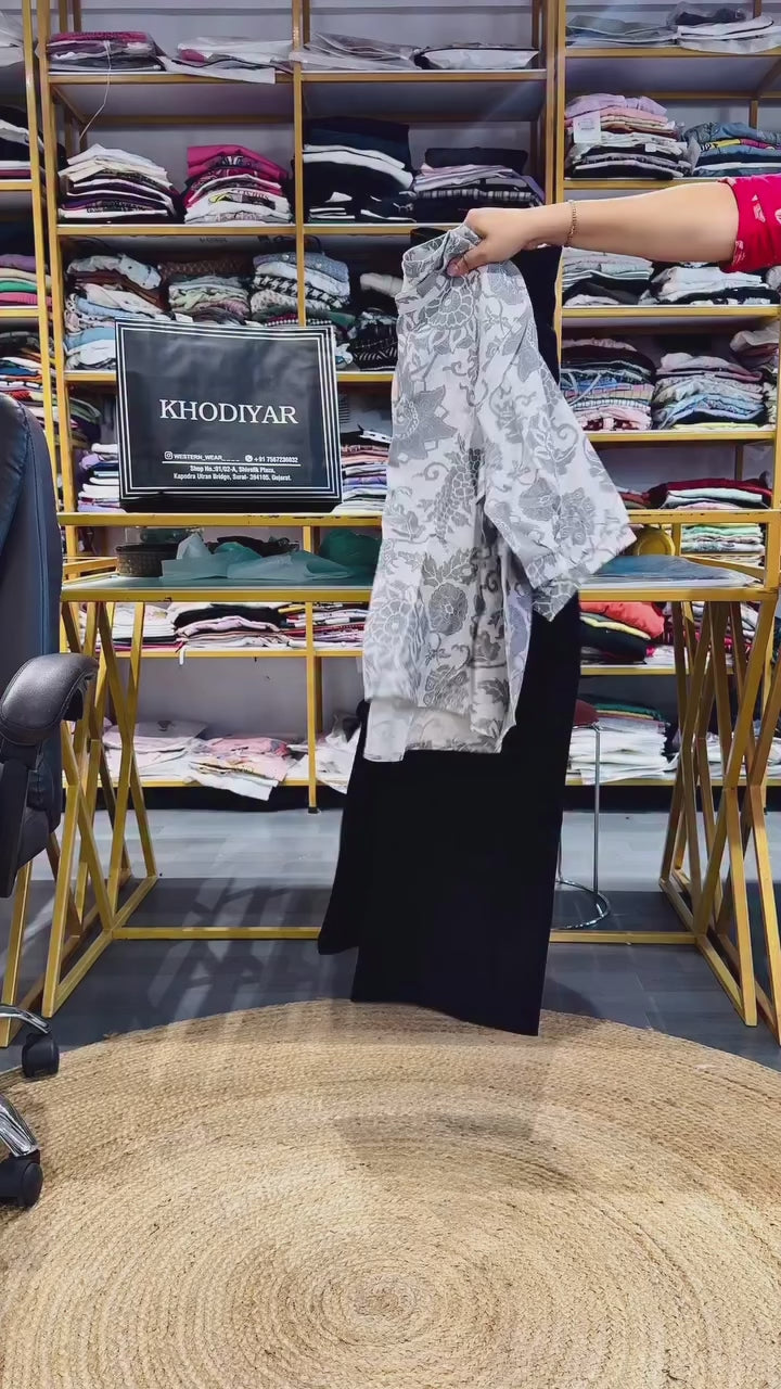 PRINTED COTTON TOP WITH BELL BOTTOM TROUSER SETTOP DETAIL:-