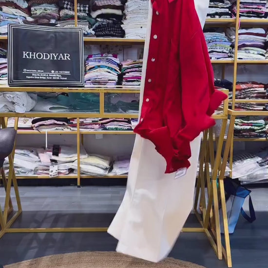 RED MUL COTTON PLAIN SHIRT WITH BELL BOTTOM TROUSER SET