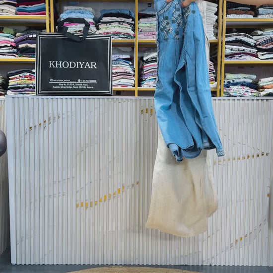 SOFT DENIM EMBROIDERY TOP WITH LINEN PANT SET