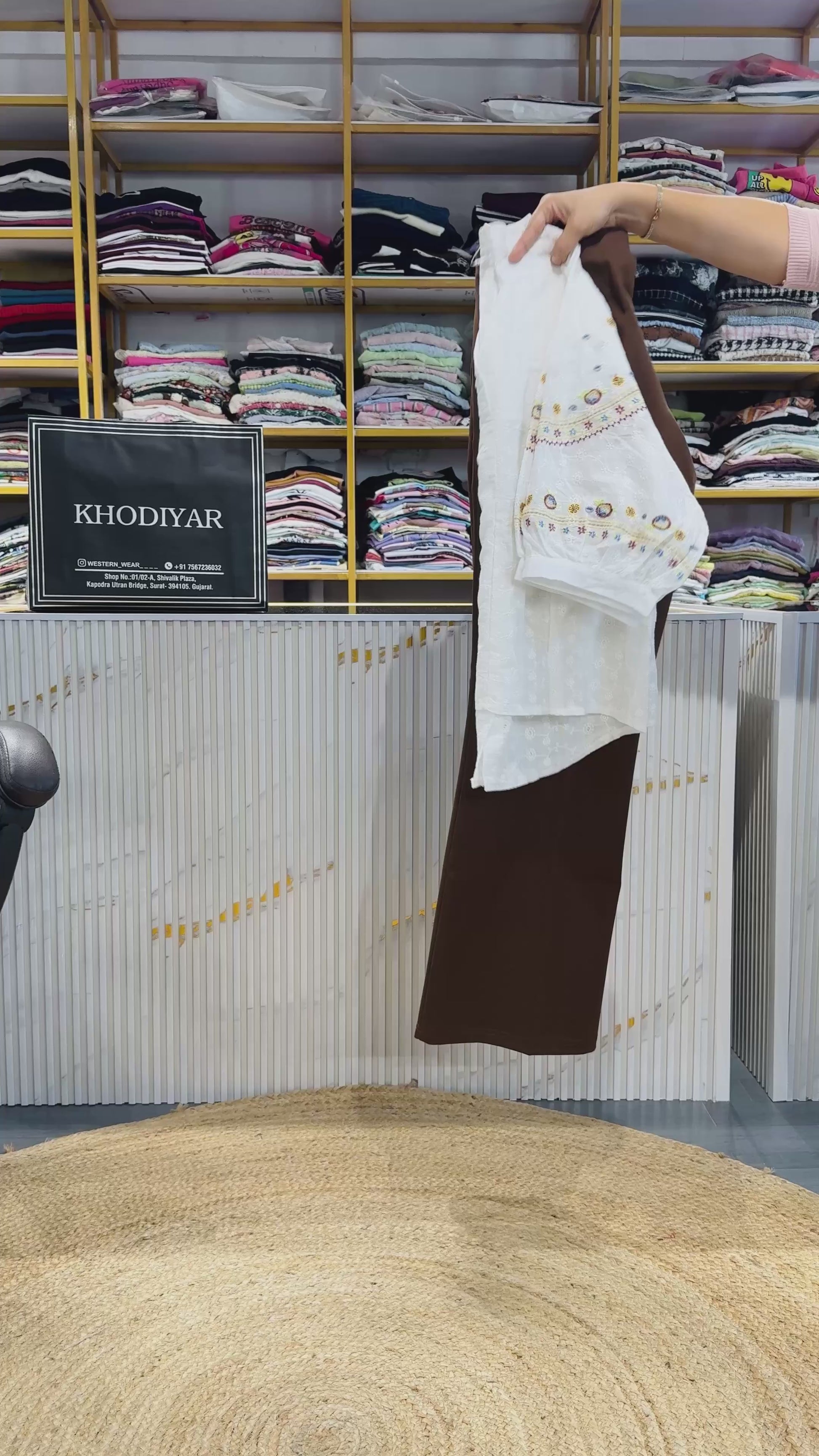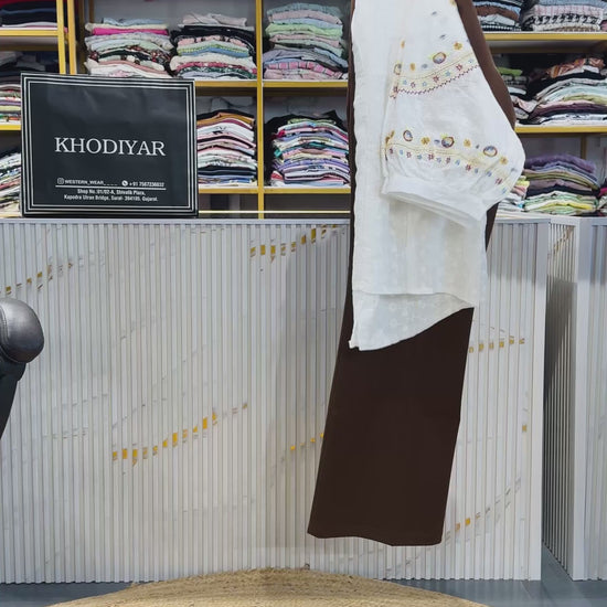 WHITE CHICEKN EMBROIDERY TOP WITH BELL BOTTOM TROUSER SET
