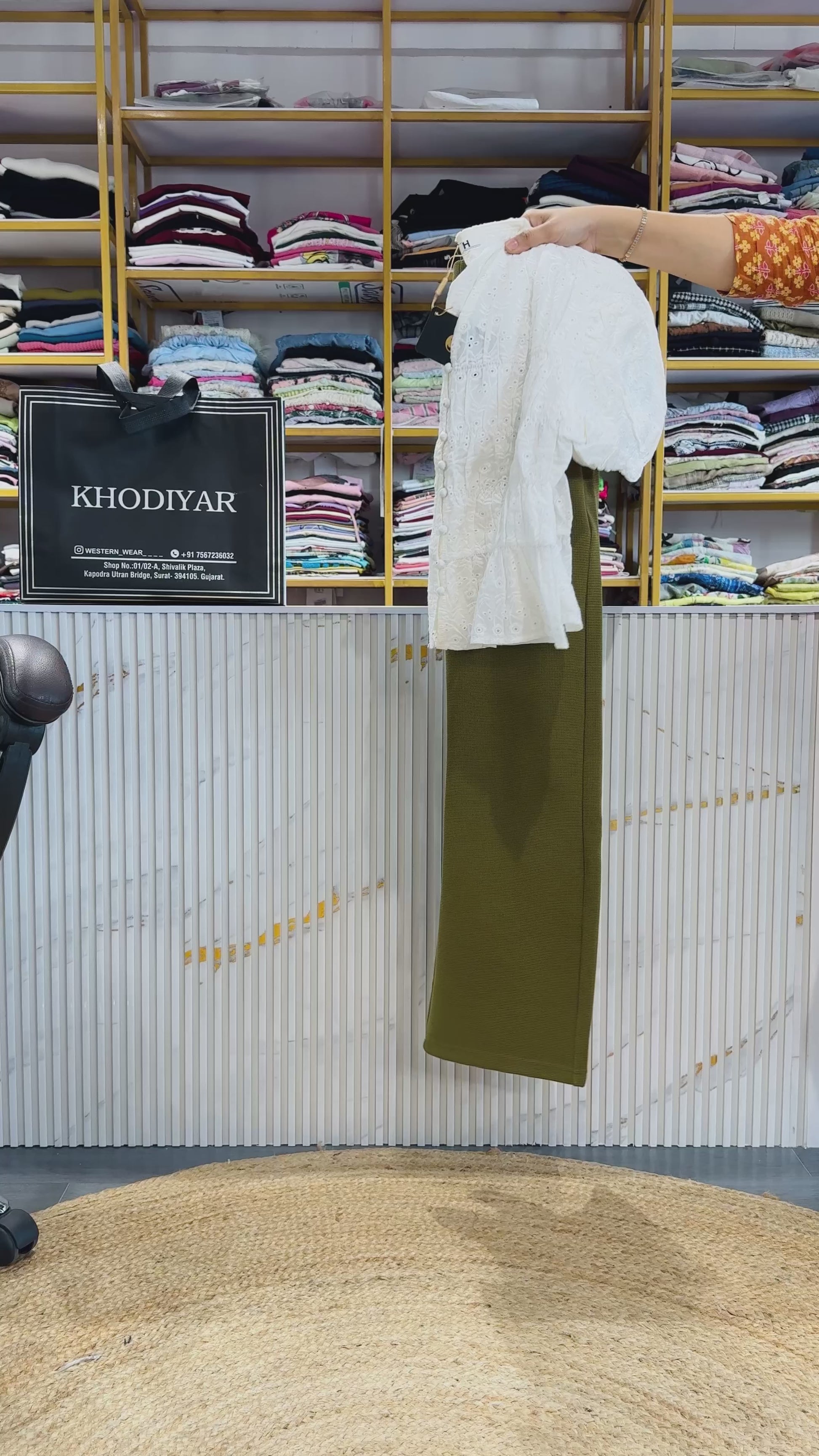 WHITE CHICKEN EMBROIDERY TOP WITH STRAIGHT TROUSER PANT SETTOP DETAIL:-