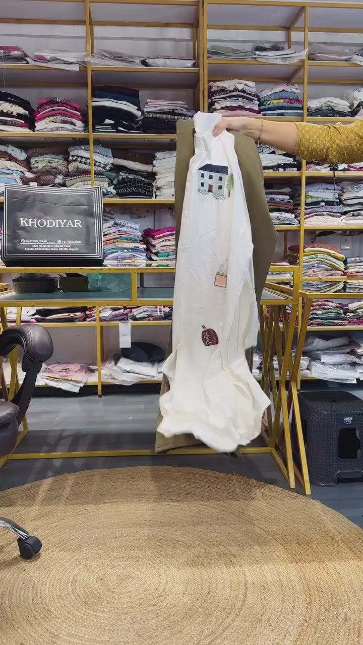 WHITE EMBROIDERY COTTON TOP WITH BELL BOTTOM TROUSER SETTOP DETAIL:-