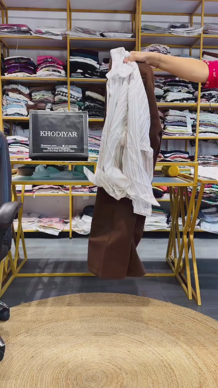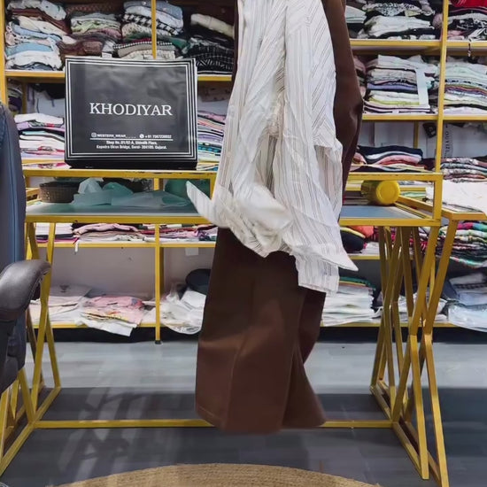 WHITE STRIPS COTTON SHIRT WITH BELL BOTTOM TROUSER SET