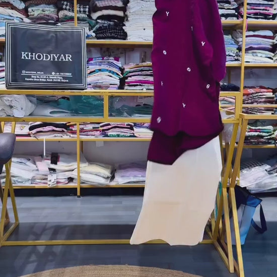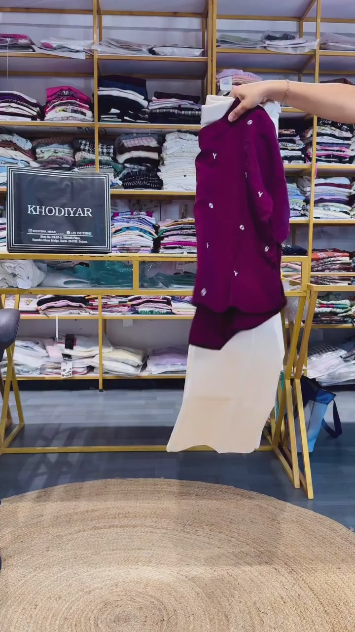 Wine EMBROIDERY TOP WITH LINEN PANT SETTOP DETAIL:-